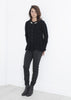 This knee length, slightly fitted jersey dress features a girlishly rounded slip of a collar, covered button placket, and a shoulder yoke with back pleat. Harvey Faircloth. Color Black. 100% Cotton. Made in U.S.A. Lana is wearing a size Small.