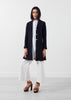 The Utility Jacket is a sturdy layering piece with the versatility to be worn independently, or as outerwear. Button placket closure at front. Pocket detail at front. Nigel Cabourn. Color Indigo. 100% Cotton. Made in Japan. Jacob is wearing a 50.